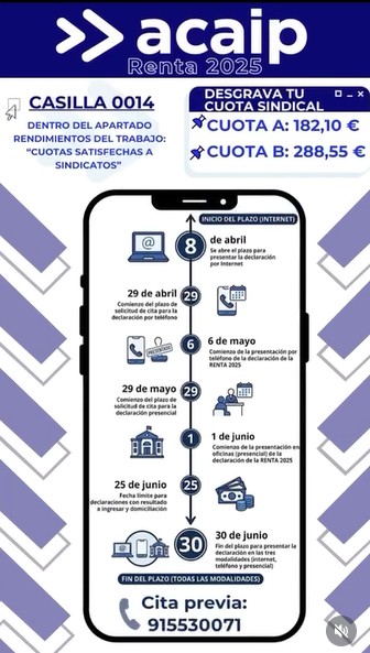 A partir del próximo día 8 de abril puedes desgrabar tu cuota de ACAIP en la declaración de la renta.