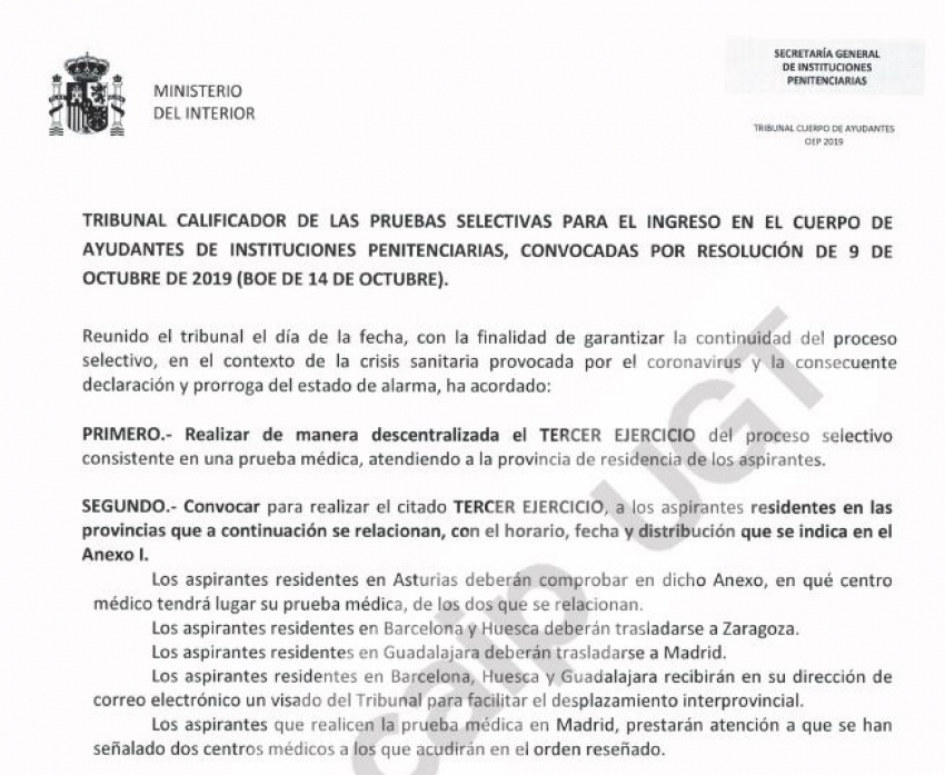 Los aspirantes residentes en Barcelona, Huesca y Guadalajara recibirán en su dirección de correo electrónico un visado del Tribunal para facilitar el desplazamiento interprovincial.