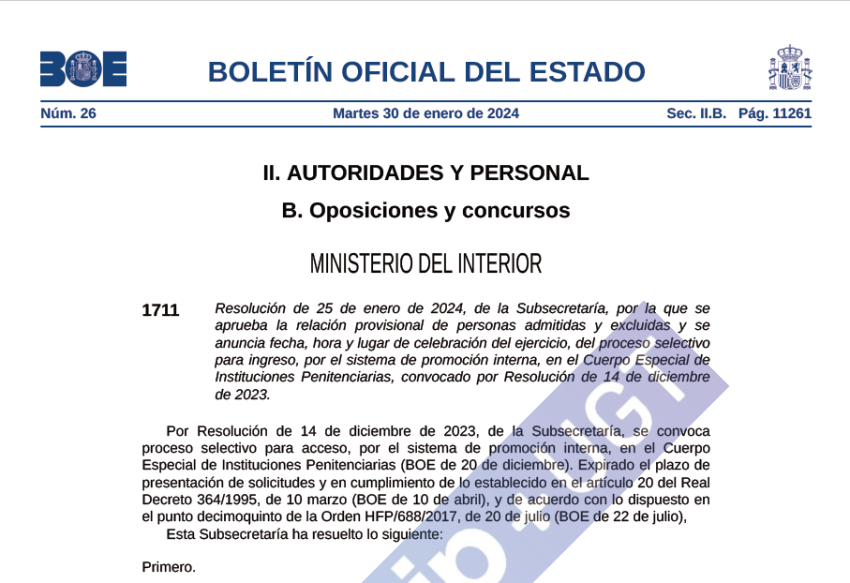 Resolución Promoción interna al Cuerpo Especial II.PP »