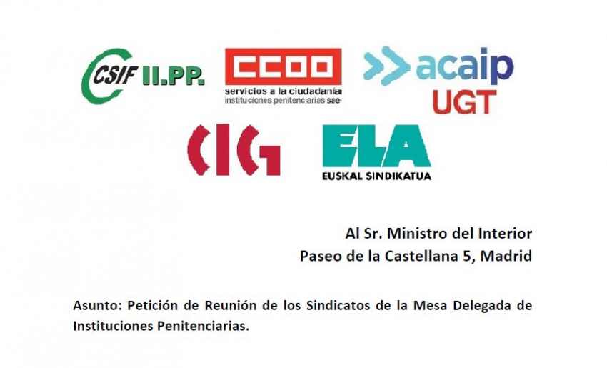 Asunto: Petición de Reunión de los Sindicatos de la Mesa Delegada de Instituciones Penitenciarias.
