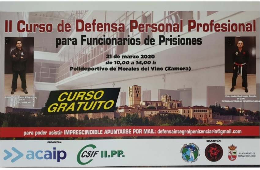 El próximo día 21 de Marzo, se va a impartir en la localidad zamorana de Morales del Vino, el 2º curso de Defensa Personal Profesional, para funcionarios de prisiones