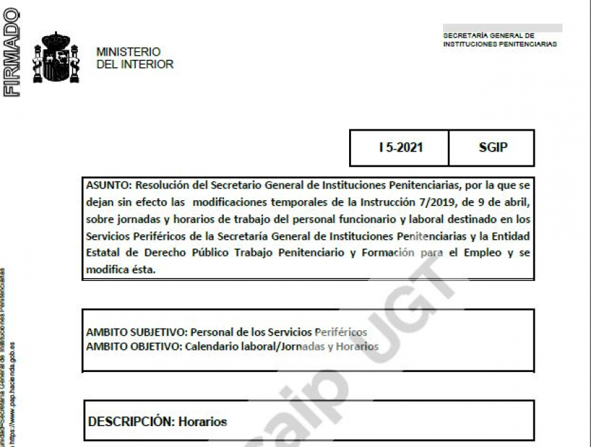 Instrucción 5/2021: horarios