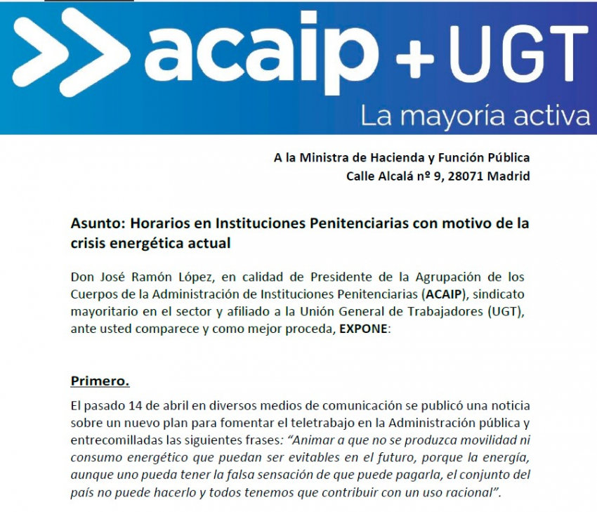 Solicitud Ministra Función Pública modificación horario por crisis energética