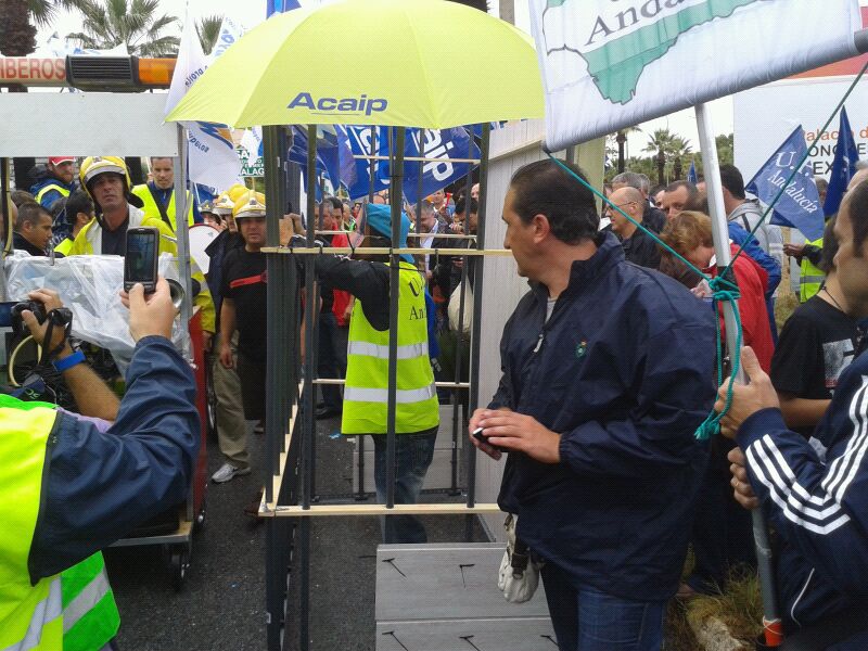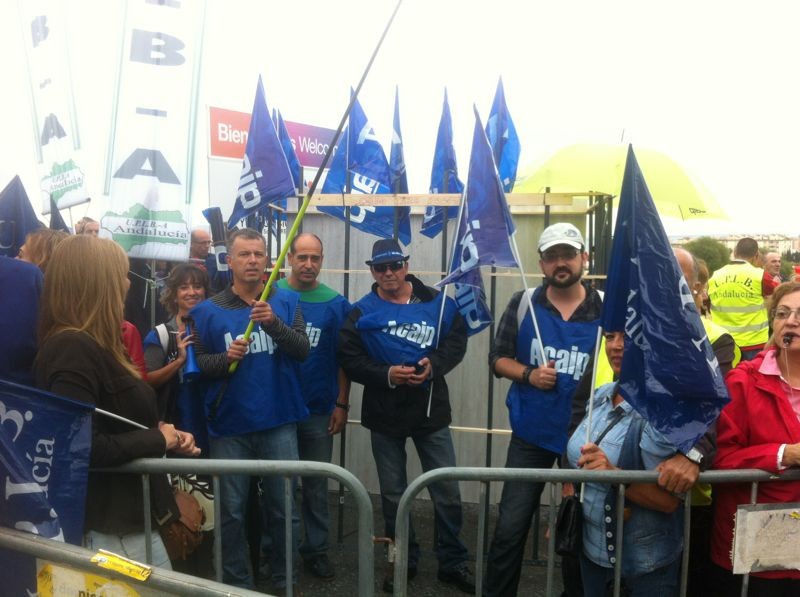 Sindicatos independientes de profesionales públicos protagonizan este viernes una protesta a las puertas del Palacio de Ferias y Congresos de Torremolinos, donde se está celebrando el XI Congreso Provincial del PP malagueño, en rechazo a los recortes contemplados por el Gobierno en los nuevos presupuestos generales de 2013.