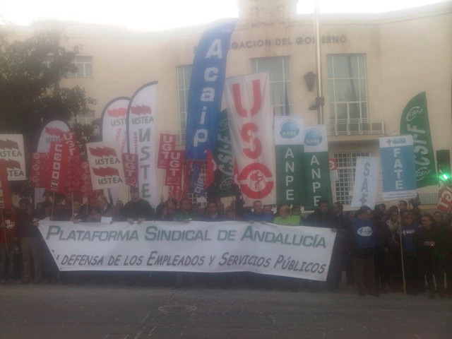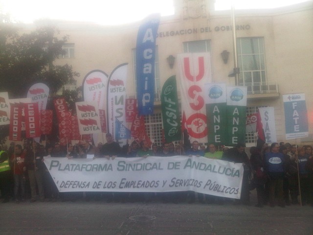 Reportaje gráfico de las concentraciones y manifestaciones realizadas en las capitales de provincia de Andalucía convocada por la Plataforma sndical en CONTRA DE LOS RECORTES A LOS EMPLEADOS PÚBLICOS