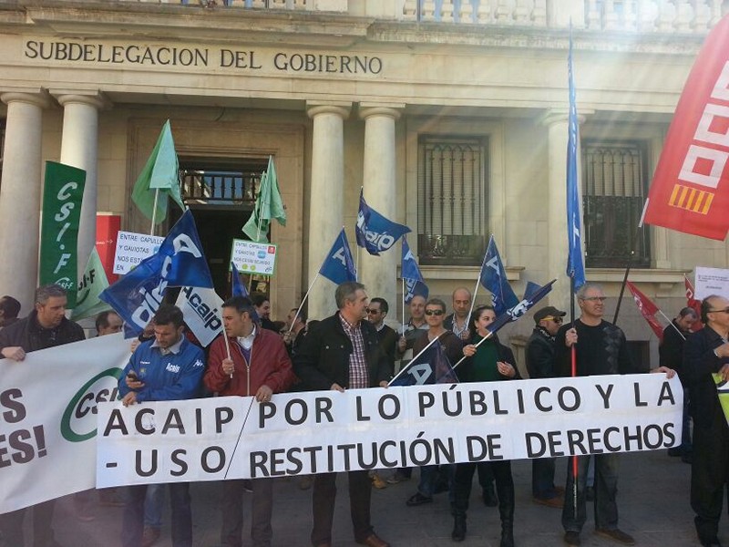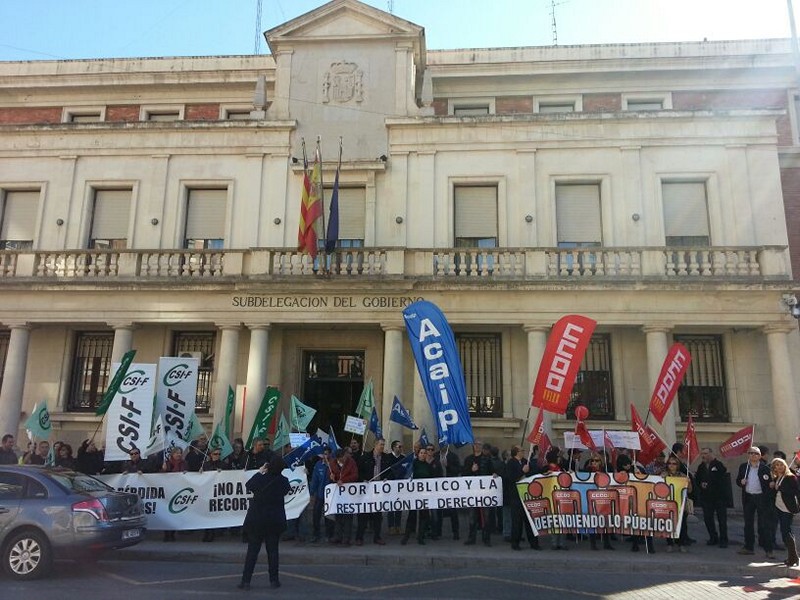 Concentración de funcionarios en la Subdelegación del Gobierno en Castellón solicitando entre otras, la restitución de derechos que el gobierno nos ha quitado a base de recortes.