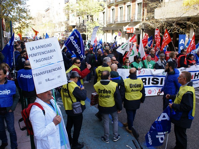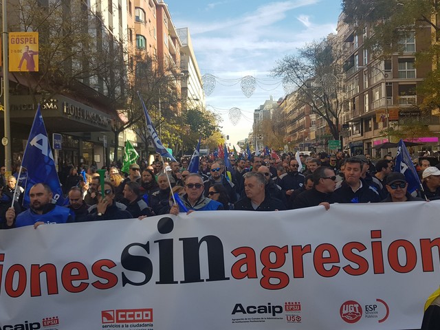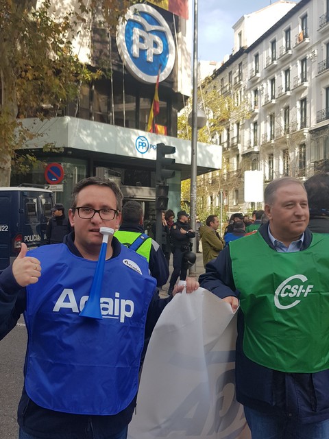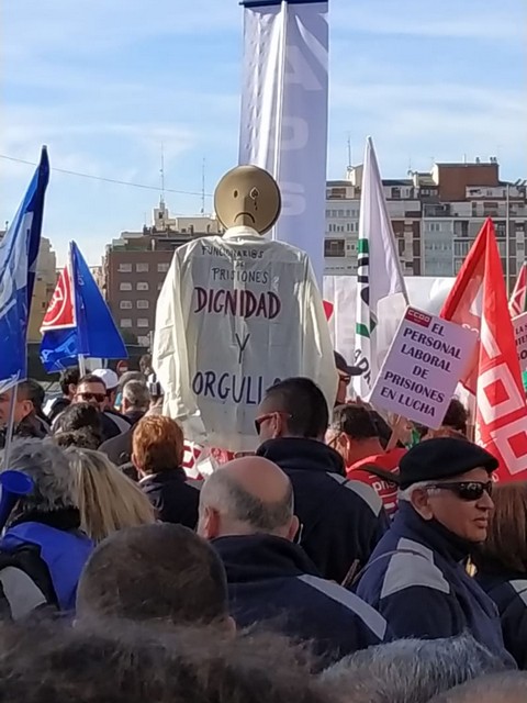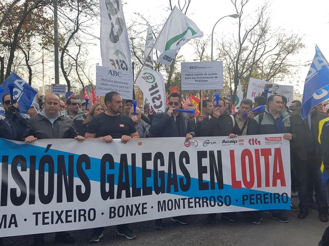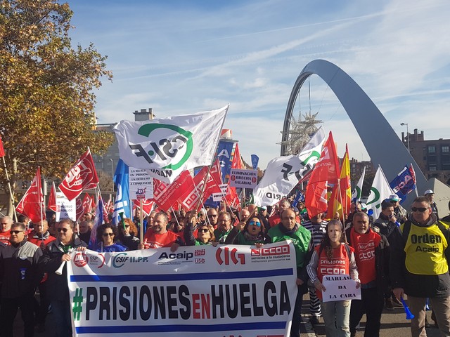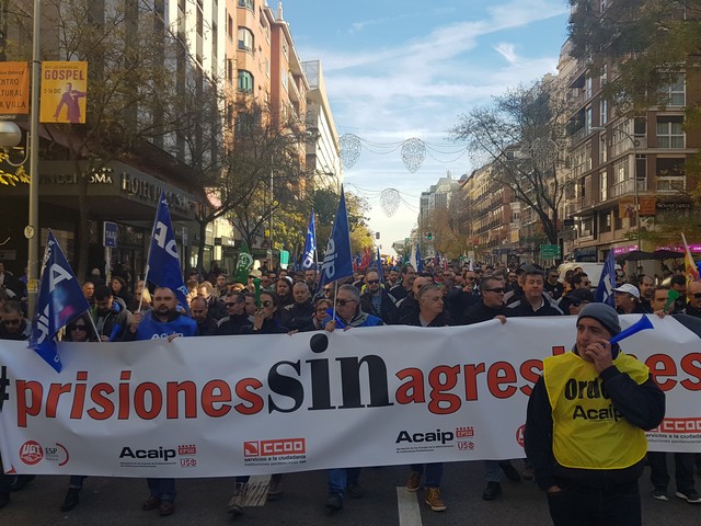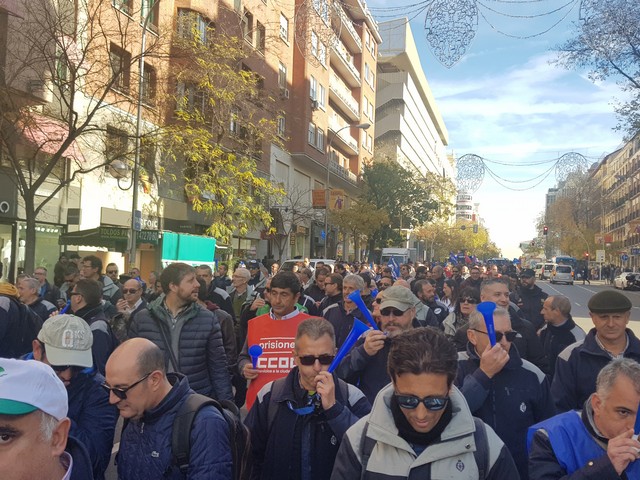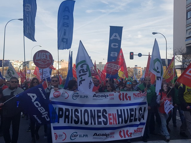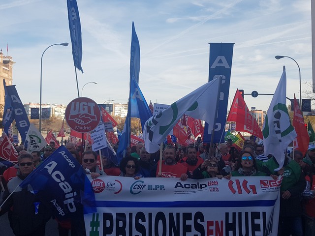 Con fecha 11 de diciembre se ha llevado a cabo la MANIFESTACION convocada por los sindicatos de la plataforma (ACAIP, CSIF, CIG, CCOO y UGT) donde han asistido mas de 7.000 emplead@s public@s penitenciarios. Esta manifestacion se ha realizado a traves de de dos marchas, llegando a las sedes de los partidos políticos (PSOE, PP, CIUDADANOS y PODEMOS) entregando un documento con una PROPOSICION DE LEY PARA LA MEJORA DE LA EFICIENCIA DEL SISTEMA PENITENCIARIO PUBLICO y culminando dichas marchas en el MINISTERIO DEL INTERIOR.