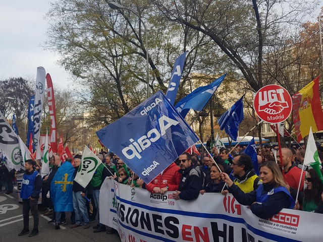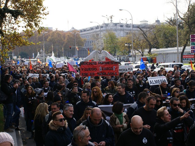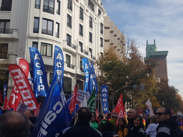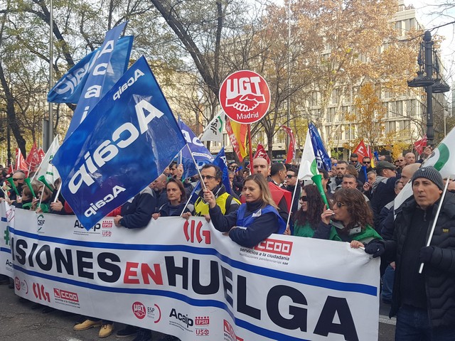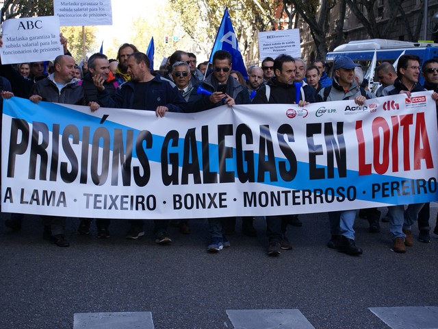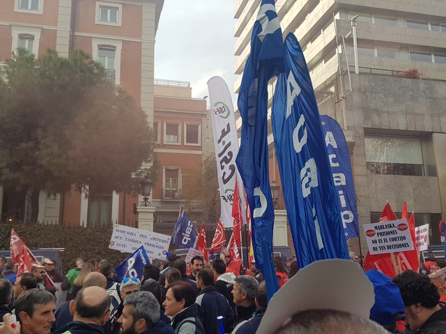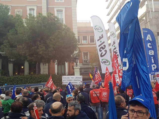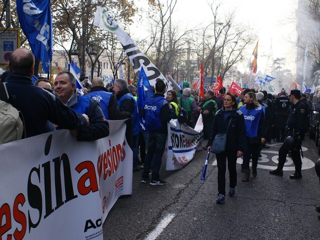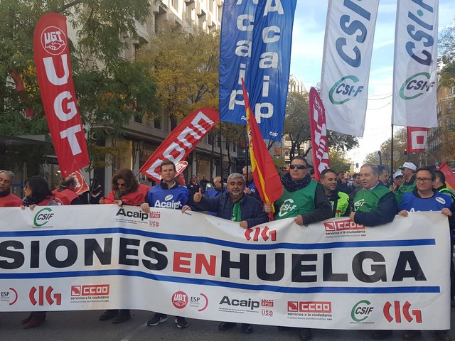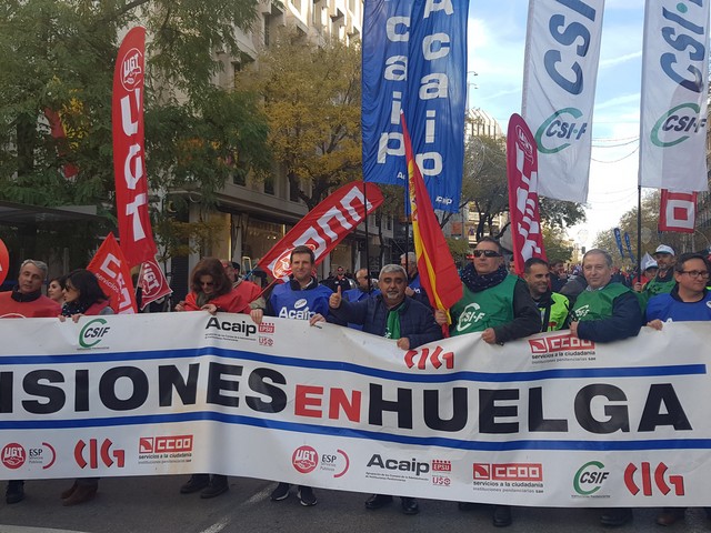 Con fecha 11 de diciembre se ha llevado a cabo la MANIFESTACION convocada por los sindicatos de la plataforma (ACAIP, CSIF, CIG, CCOO y UGT) donde han asistido mas de 7.000 emplead@s public@s penitenciarios. Esta manifestacion se ha realizado a traves de de dos marchas, llegando a las sedes de los partidos políticos (PSOE, PP, CIUDADANOS y PODEMOS) entregando un documento con una PROPOSICION DE LEY PARA LA MEJORA DE LA EFICIENCIA DEL SISTEMA PENITENCIARIO PUBLICO y culminando dichas marchas en el MINISTERIO DEL INTERIOR.