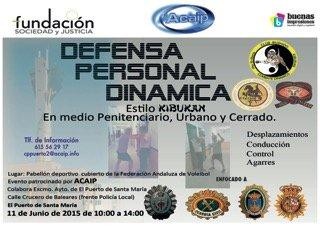 Con fecha 11 de junio 2015, se ha celebrado en las instalaciones del pabellón deportivo del Puerto de Santa Maria un curso de DEFENSA PERSONAL DINÁMICA dirigido a funcionarios de Instituciones Penitenciarias, policía local, nacional y guardia civil . Dicho curso ha sido patrocinado por Acaip y la Fundación Sociedad y Justicia.