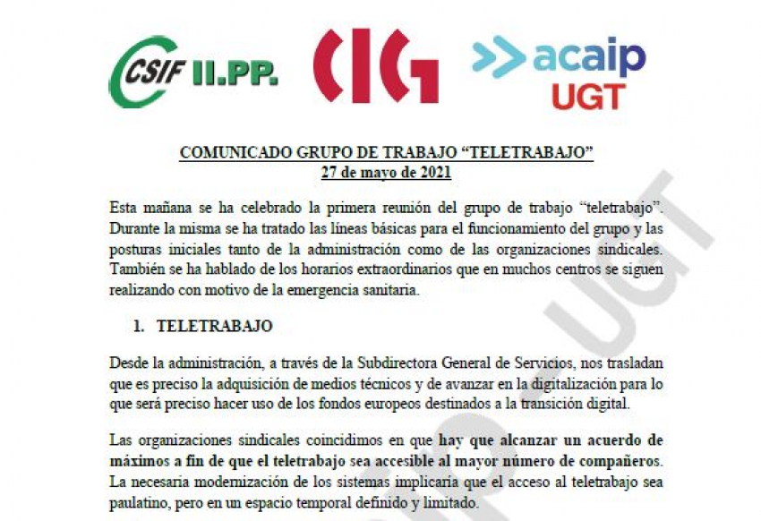 Comunicado primera reunión grupo "Teletrabajo"