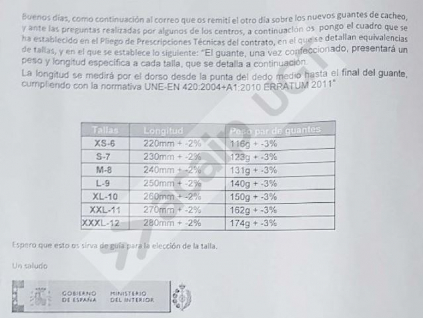 En el dia de hoy y desde la SGIIPP se ha enviado un email a los directores de los centros penitenciarios para que los funcionarios indiquen la talla para la entrega de los nuevos guantes de cacheo.