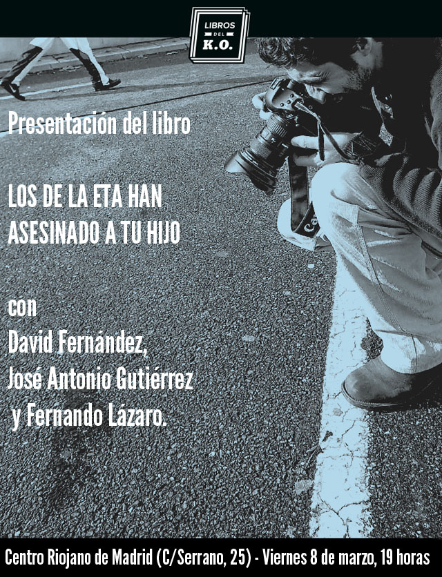 El próximo 8 de marzo se presenta en el Centro Riojano de Madrid el Libro “Los de ETA han asesinado a tu hijo”, del que es coautor nuestro compañero José Antonio Gutiérrez, Director de Estudios de Acaip, junto el periodista David Fernández.