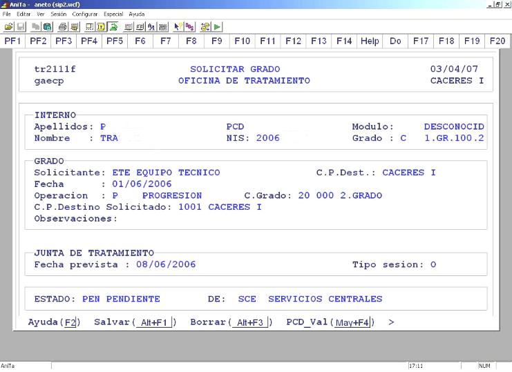 En este momento aparece la primera pantalla para la introducción de datos del PCD-Valoración. En