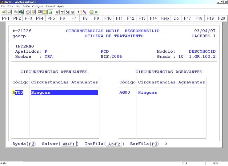 elecciones necesarias sobre tablas ya creadas en el programa. Son: Circunstancias modificativas
