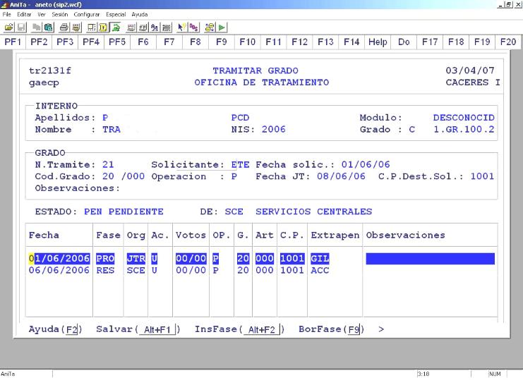 anterioridad, recogiendo los datos identificativos de la tramitación de grado y destino, incluido el