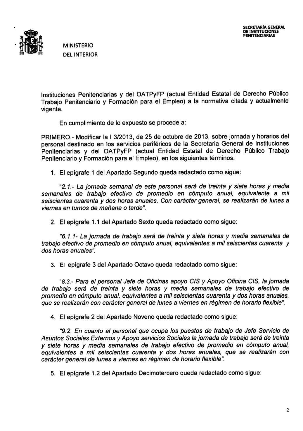 INSTRUCCIÓN 7/2015: MODIFICACION JORNADAS Y HORARIOS - page 2