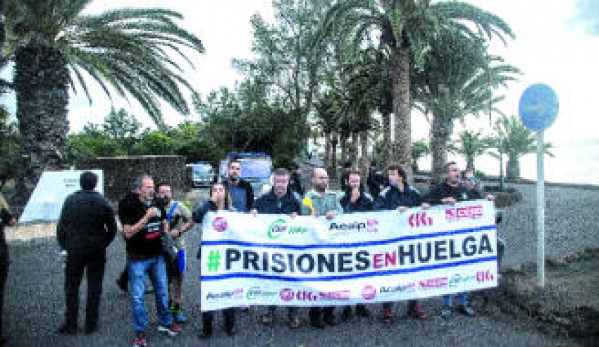 Los funcionarios de Tahíche portaron una pancarta en la que se podía leer #prisiones en huelga trasladando de ese modo hasta la residencia presidencial la marea de movilizaciones que la plataforma sindical de prisiones (UGT, CCOO, CSIF, ACAIP, UGT y CIG) protagonizó durante varias jornadas de paro en octubre y noviembre pasados en la prisión lanzaroteña, al igual que ocurrió en los centros penitenciarios de todo el territorio nacional.